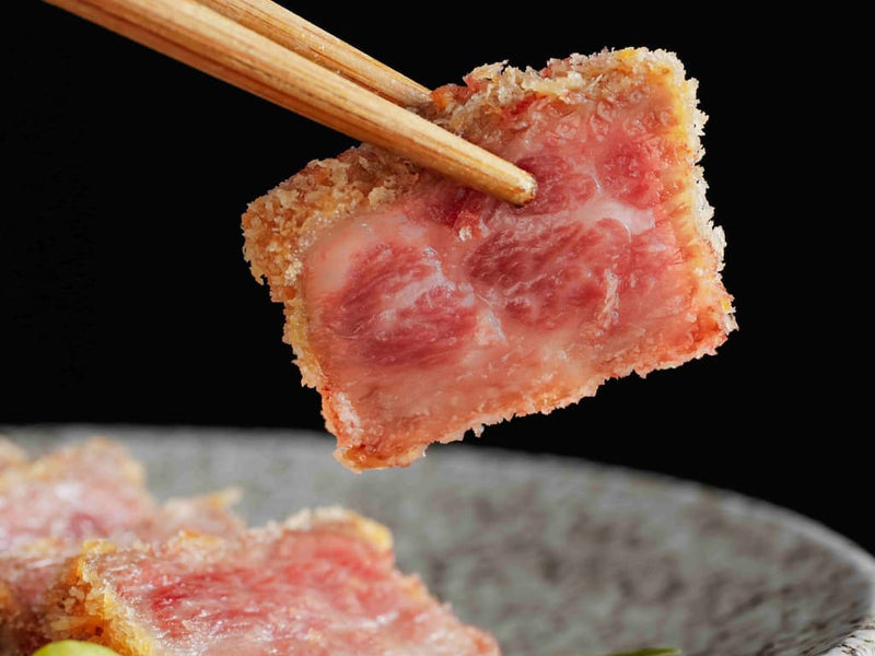 嚴選日本最高認證A5等級的黑毛和牛、F1日本國產牛。金黃酥脆的外衣下,是透過濕式熟成技術喚醒的深層靈魂,每一口都是軟嫩與嚼勁兼具,滿足視覺與味覺的雙重饗宴。